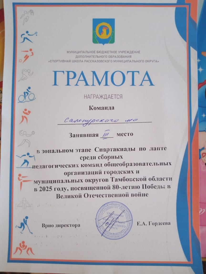 💥Поздравляем команду Сампурского муниципального округа с призовым 3 местом в зональном этапе Спартакиады по лапте среди сборных педагогических команд городских и муниципальных округов Тамбовской области. Спасибо вам огромное за ваши старания и целеустремлённость.🌟 Мы верили в вас до последнего удара битой и будем верить дальше!🏆 Настоящие чемпионы — это те, кто выходит на поле и сражается до конца! Пусть следующий сезон принесёт ещё больше ярких моментов, громких побед и незабываемых эмоций.